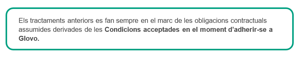 Glovo tracta les dades personals per: