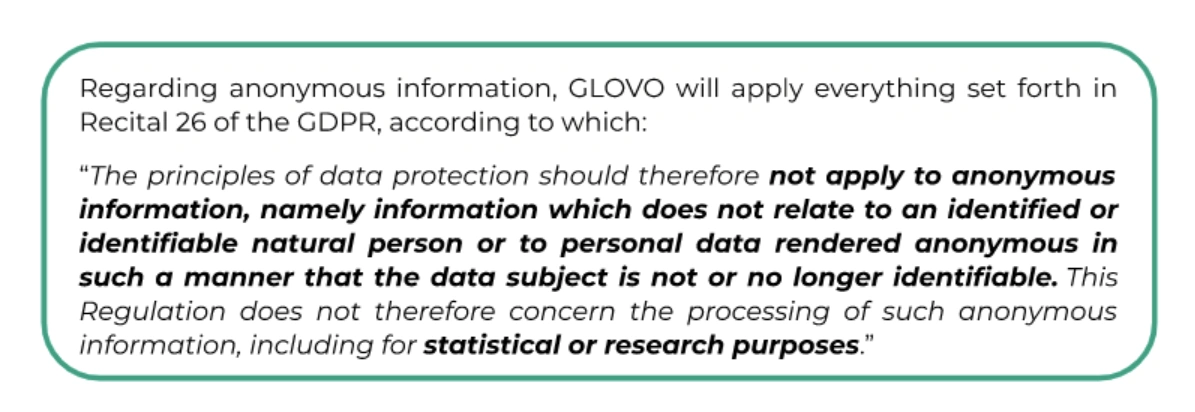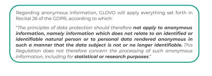 In any case, Glovo will in no event modify its policies or practices to make them less effective in the protection of our customers’ previously stored personal data.