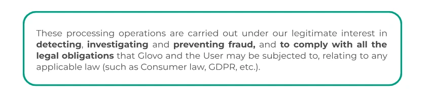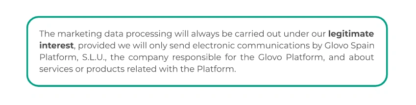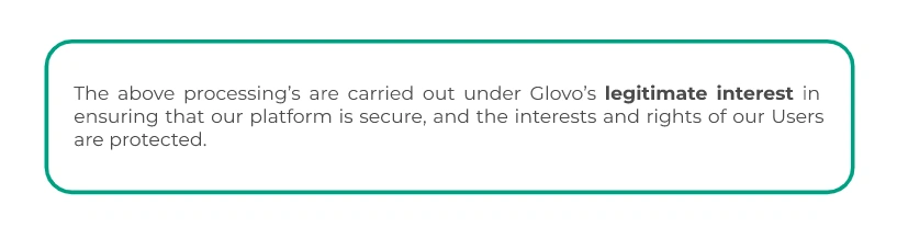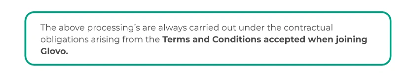 Glovo processes your personal data for: