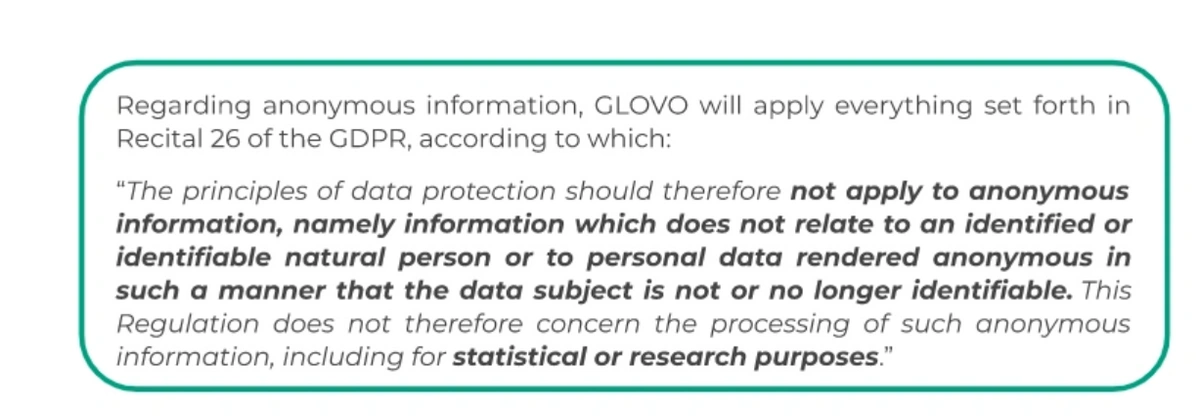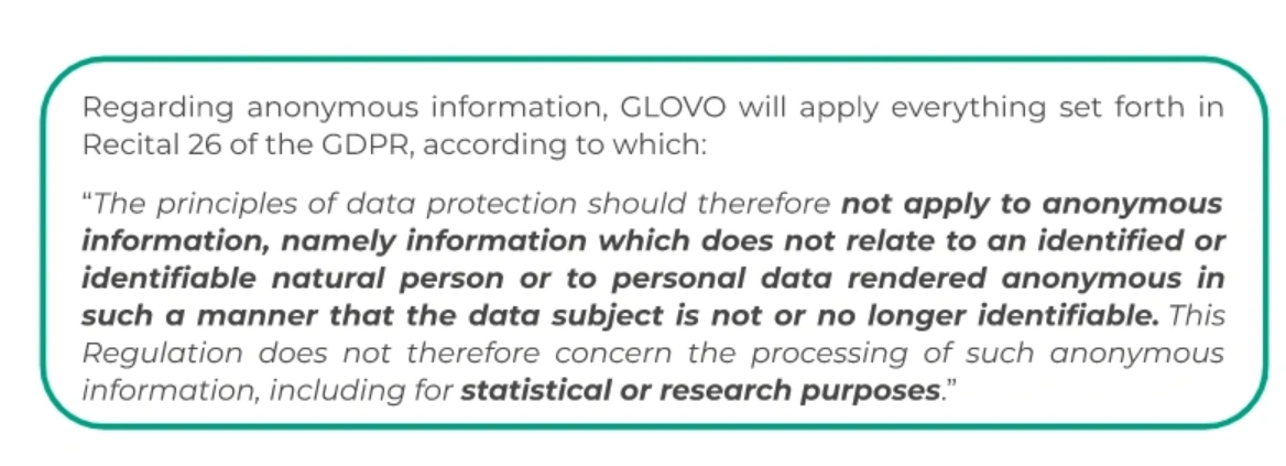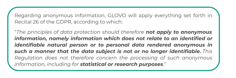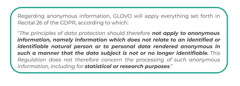 We remind you that you have the right to not be subject to automated decision making in case you consider that user segmentation may have legal effects to you., by emailing us to gdpr@glovoapp.com