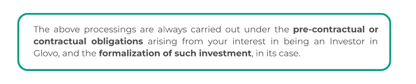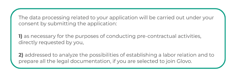 1. Glovo informs its employees and third parties that it will process the personal data provided in this context for different purposes: