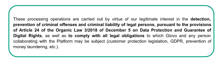2. Glovo declares that it has all the measures required by current regulations to ensure: