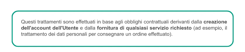 Al fine di affrontare e risolvere efficacemente le tue preoccupazioni, che sono parte integrante dell'adempimento del servizio che offriamo, la base giuridica dell’elaborazione dei tuoi dati è l’ "esecuzione di un contratto" in conformità con il RGPD.