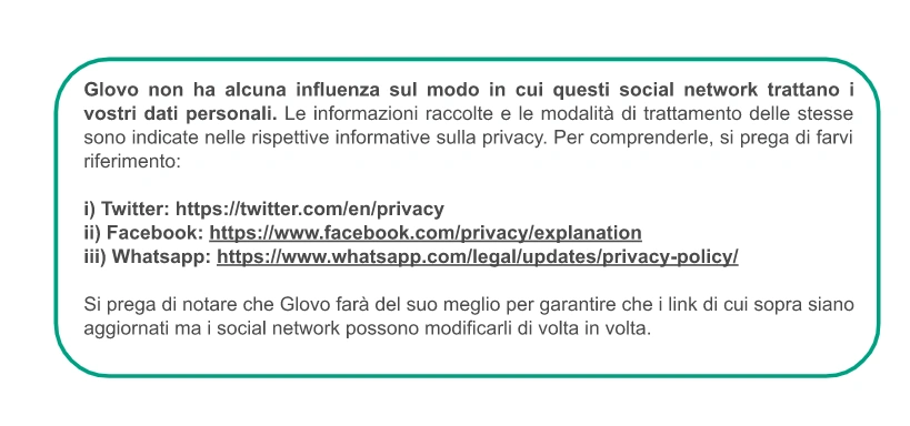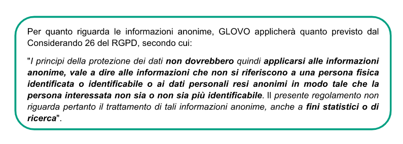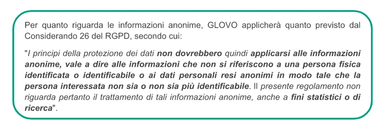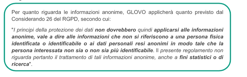 Tuttavia, Glovo non modificherà in nessun caso le proprie politiche o pratiche per renderle meno efficaci rispetto alla protezione dei dati personali.