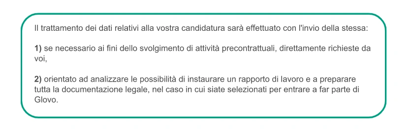 g) Per "Candidato" si intende: chiunque si candidi per un lavoro sul sito web o sull'App di Glovo