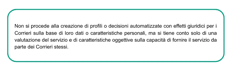 Corrieri sulla base di loro dati o caratteristiche personali, ma si tiene conto solo di una