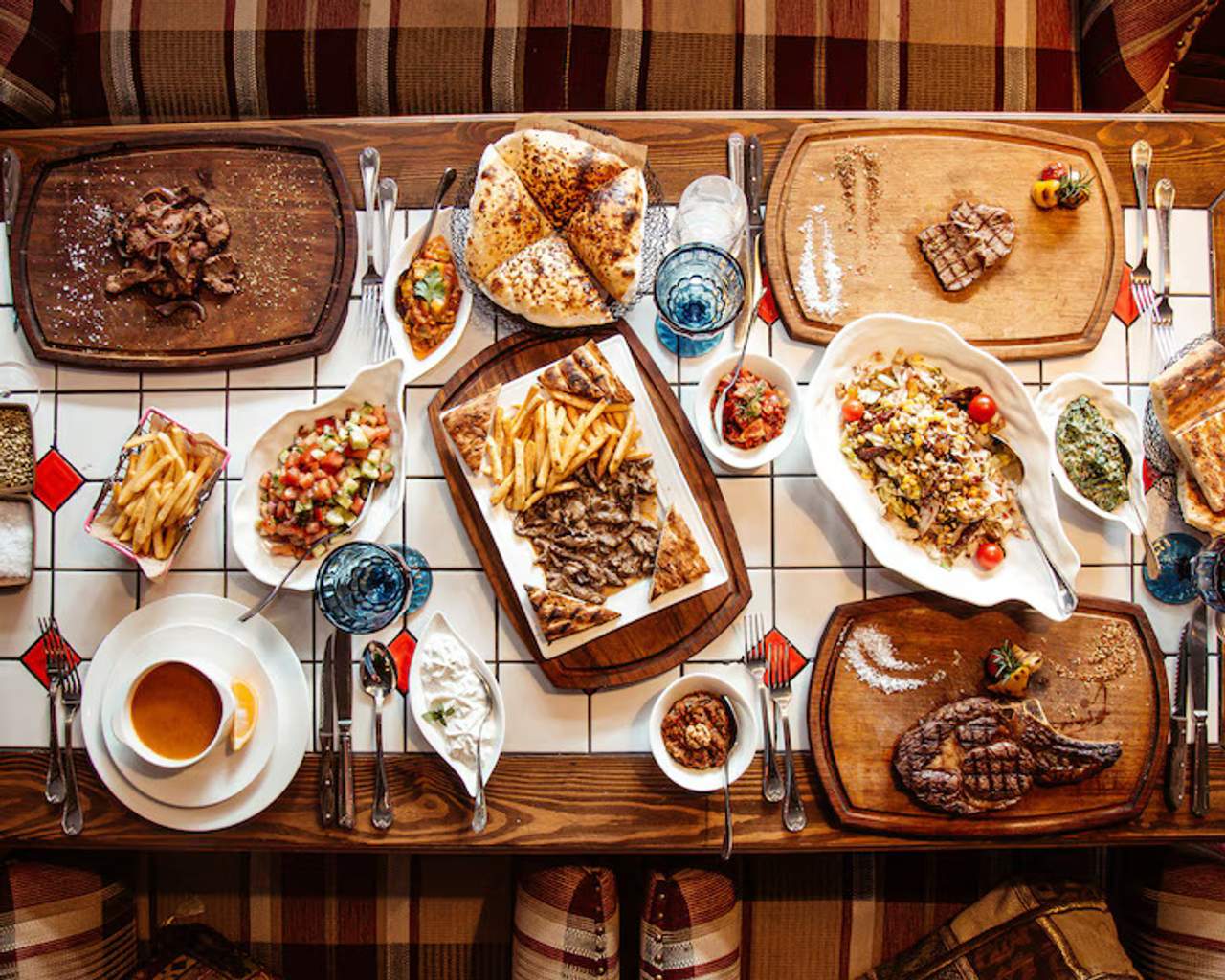 Mješano meso: gratinirani batak, roštiljska kobasica, ćevap, dimljena vješalica, pljeskavica, rolovani ražnjić, pomfrit