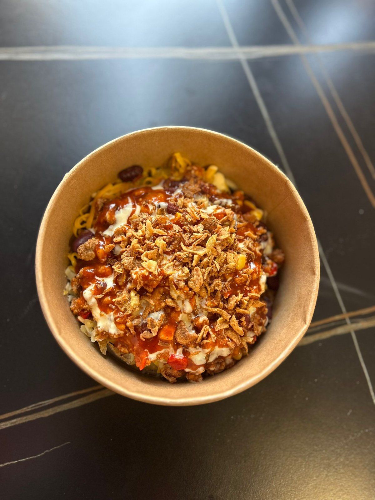 Krompir, pulled chicken gouda sir, cheddar sir maslac, prženi luk