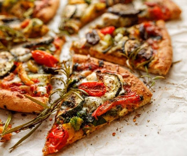 Sos, mozzarella, pršut, gljive, povrće, riba, masline