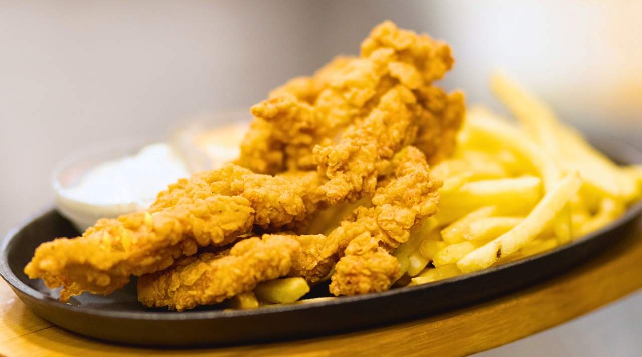 Pohovani palačinci, pileće meso, sos, pomfrit, tartar