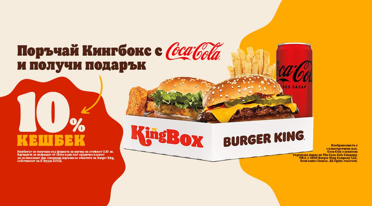 Любими Burger King класики - в една кутия! Сочен Чикън Бургер, легендарен Cheeseburger, 4 златисти пилешки хапки, хрупкави пържени картофки и освежаваща напитка. Перфектната кралска комбинация.