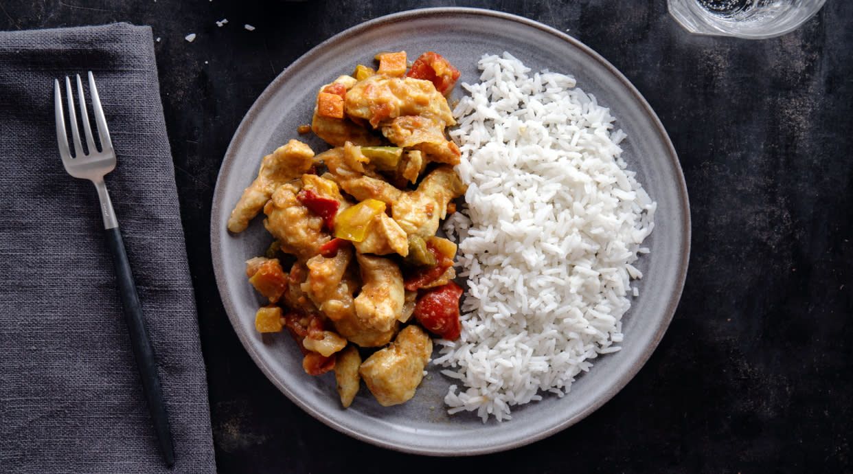 Бяла риба на плоча с бял ориз и моркови краставици (450г)