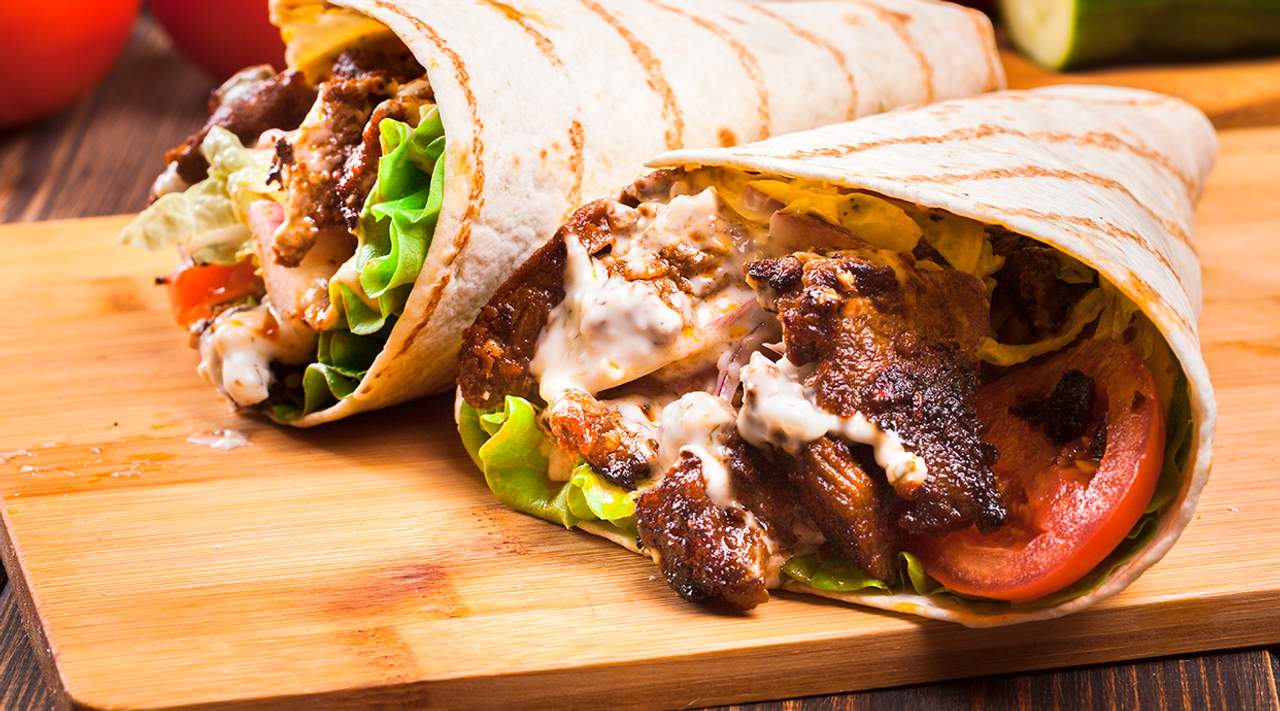 Cос, домат, кисели краставички, пържени картофи, увити в лаваш