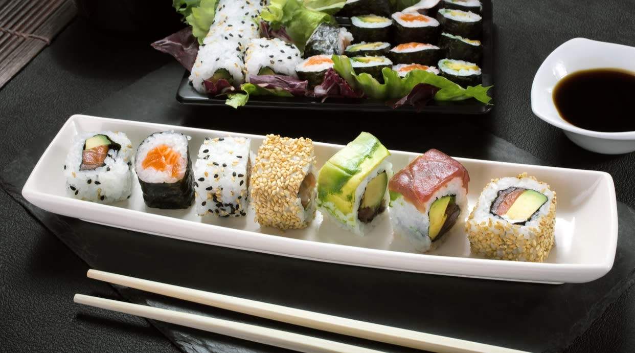 Ориз, нори, сусам, сьомга, авокадо