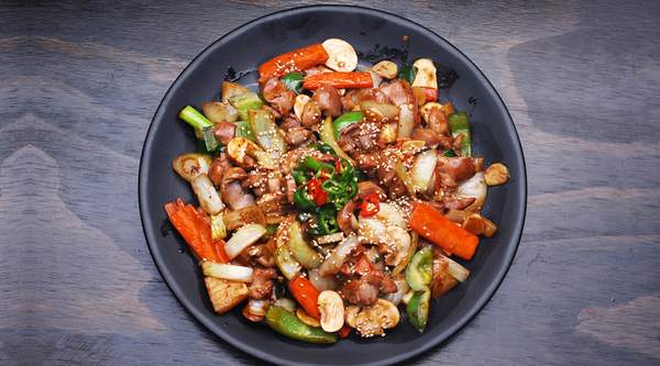 Свинско месо, зеленчуци, паста от червени чушки -300г