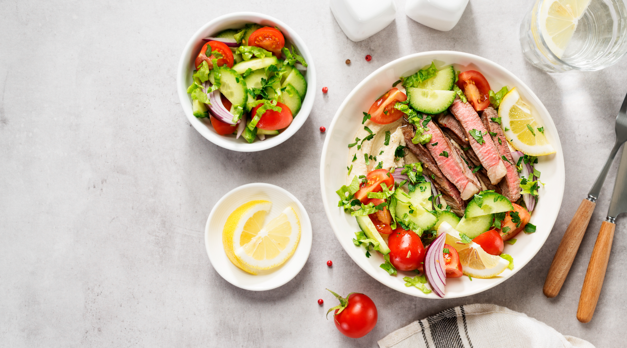Пилешко маринова филе, зеленчуци (чушка, лук, домат), малко чеснов сос, и малко пържени картофки за вкус, без да убива диетата !