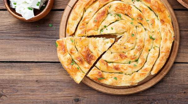 Цедено краве мляко, кисели краставички, копър, чесън и орехи.