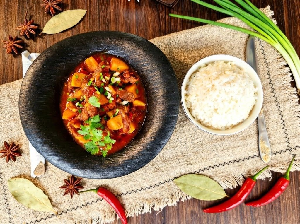 Soupe de viande de chèvre mijotée avec des légumes , carotte, tomate et épices