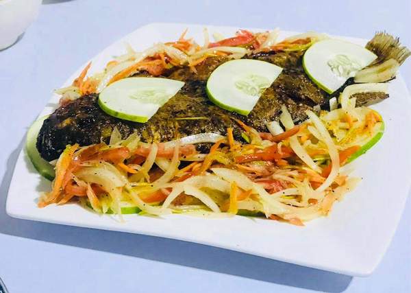 Plat de cabri cuit à feu vif et accompagné d'une sauce piquante