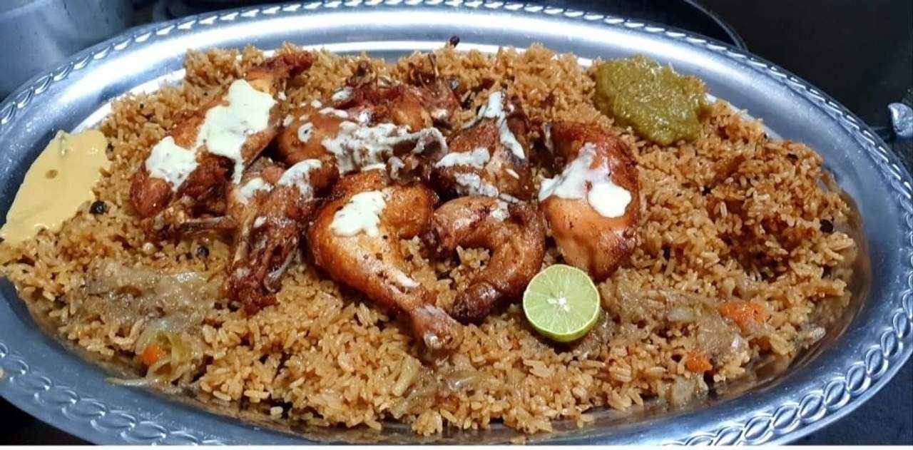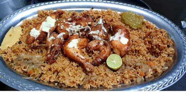 Vapeur de riz soumara au poulet sauter accompagnés de piment et moutarde