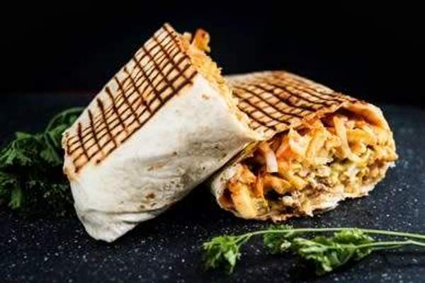Escalope mariné, salade, tomate, oignon Le Wrap n'est pas servi en menu si vous désirez un menu choisissez l'option menu