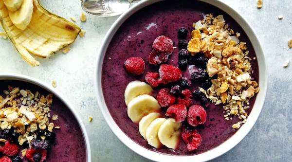 Bowl de Plátano, Yogurt, Granola Casera, Arándanos y Toping de Cacahuete.