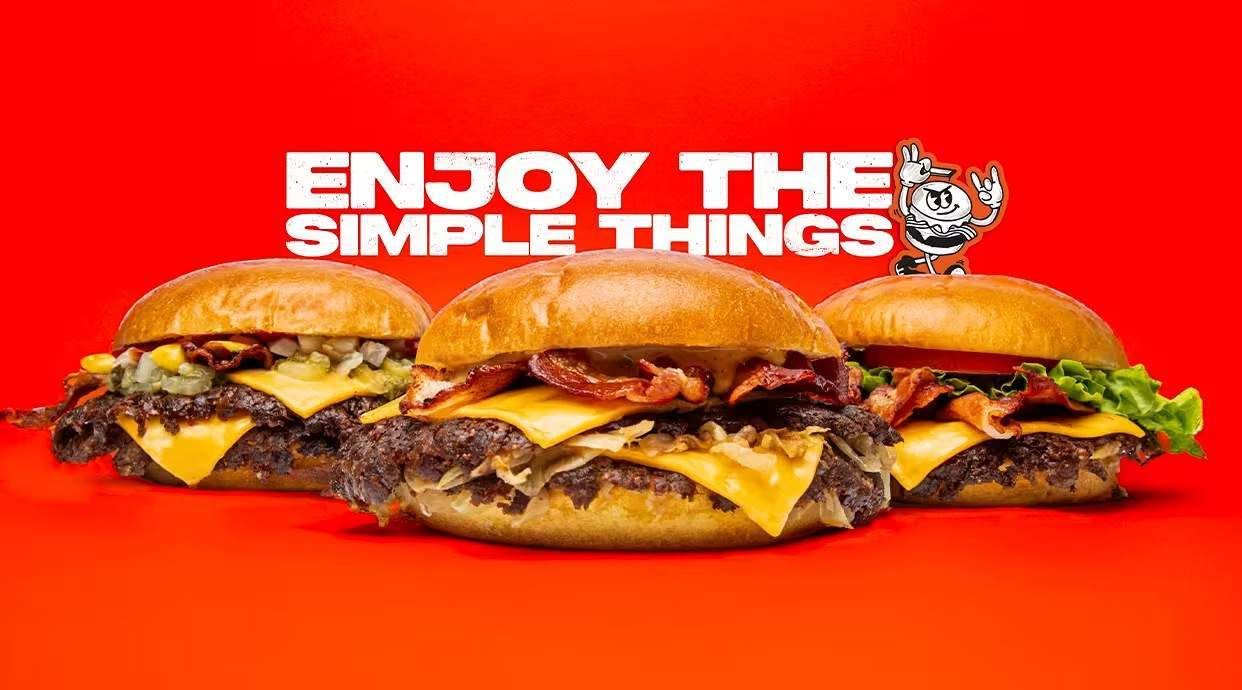 DOBLE smash burger con queso americano, bacon, pepinillos, cebolla, mostaza, salsa de tomate, House Fries y tu bebida fav.