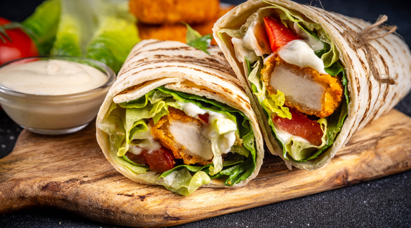 Pan de tortita fina durum, carne de ternera, pollo o mixto, ensalada y salsa