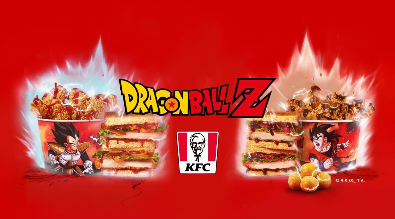 La Fusión de Dragon Ball Z con KFC: incluye un Katsu Sando (Teriyaki o Teriyaki Picante) con 1 Filete de pechuga Original, Pan de molde Brioche, Salsa, Encurtido y Lechuga. Con 4 Bolas de Dragon, Complemento y Bebida.