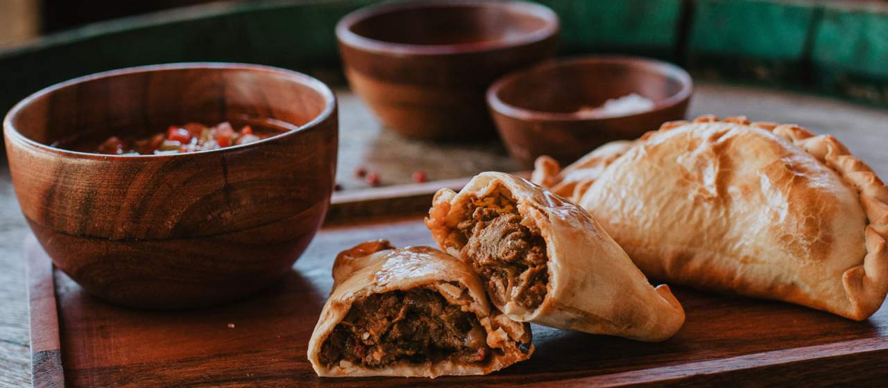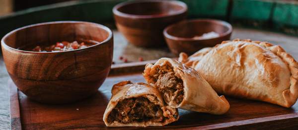 Picantes y atrevidas. Estas deliciosas empanadilla de masa roja coloreada con pimentón dulce, está rellena de la perfecta combinación de lomo picante de cerdo y queso ahumado.