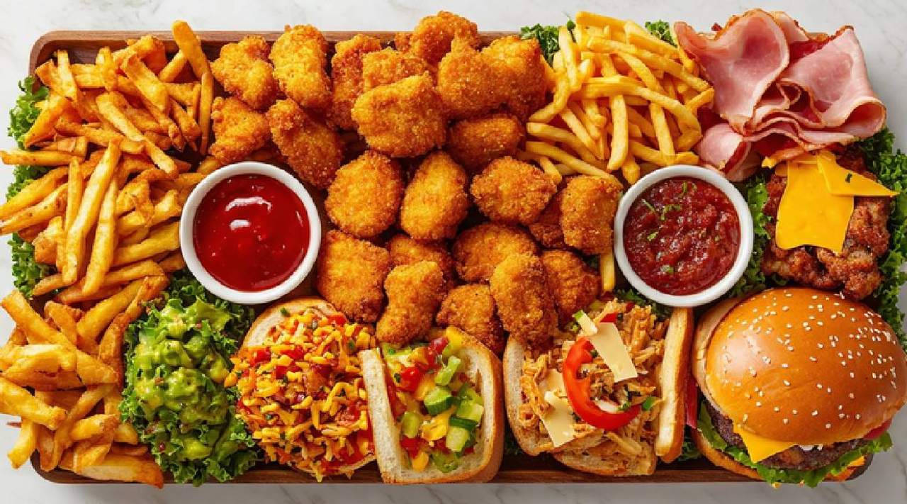 Hamburguesa tipo Smash acompañada de beicon queso chedar y salsa carbonara