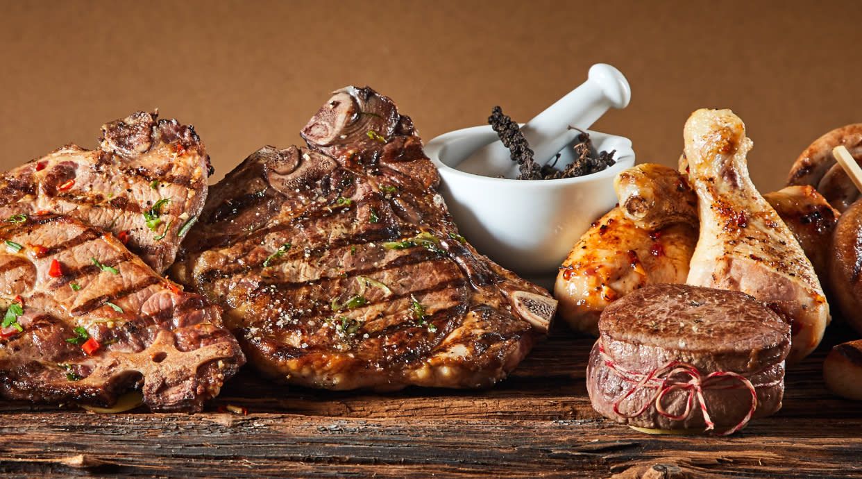 Carne picada de ternera y pechuga de pollo con salsas caseras