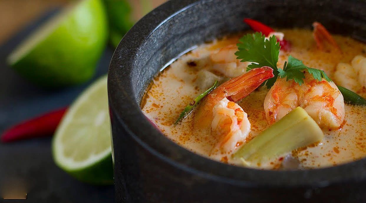 Con langostinos al curry