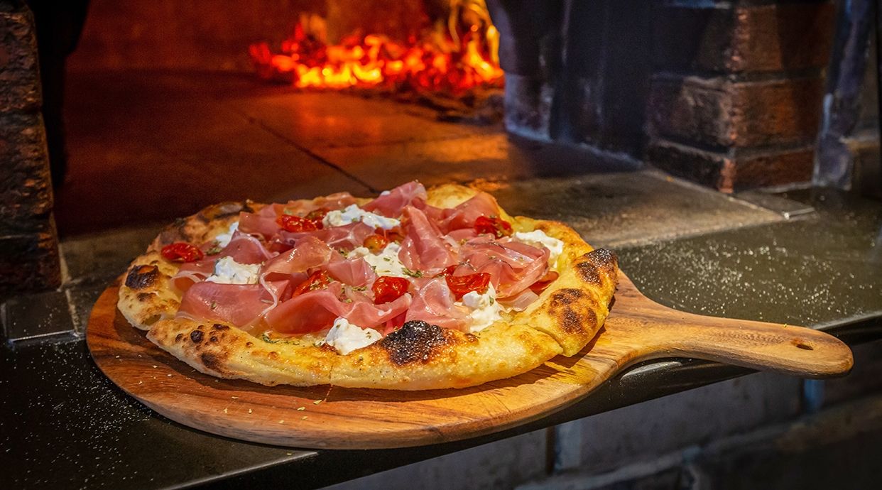 Fior di latte, rúcula, jamón crudo de Parma, tomates cherry y aceite de oliva virgen extra
