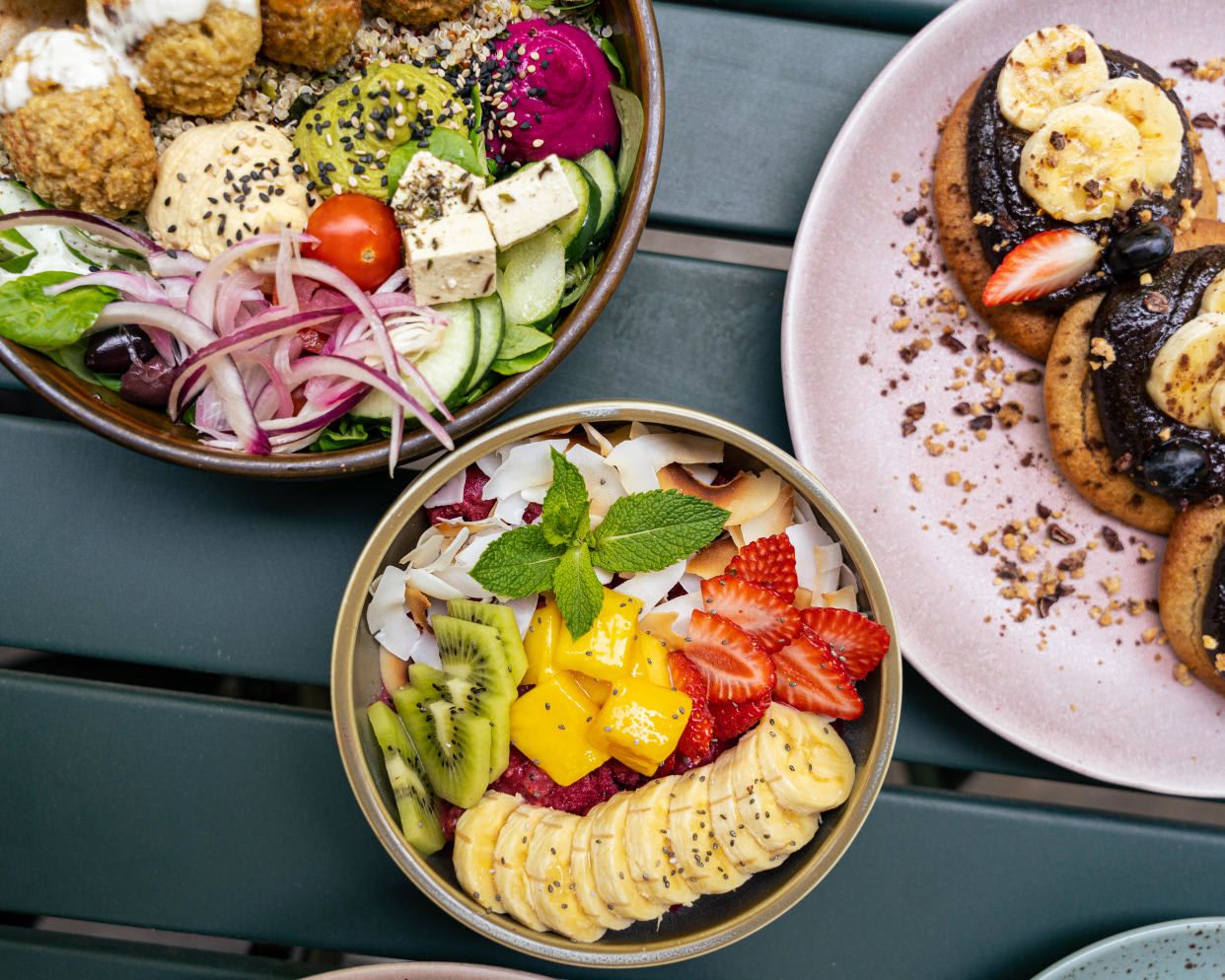 Elige uno de los smoothies, y te lo servimos en un bowl cubierto de fruta de temporada, chips de coco y granola sin gluten
