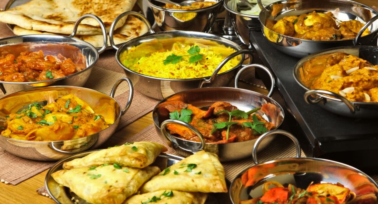 Cordero cocinado, salsa de curry, cebollas y tomate