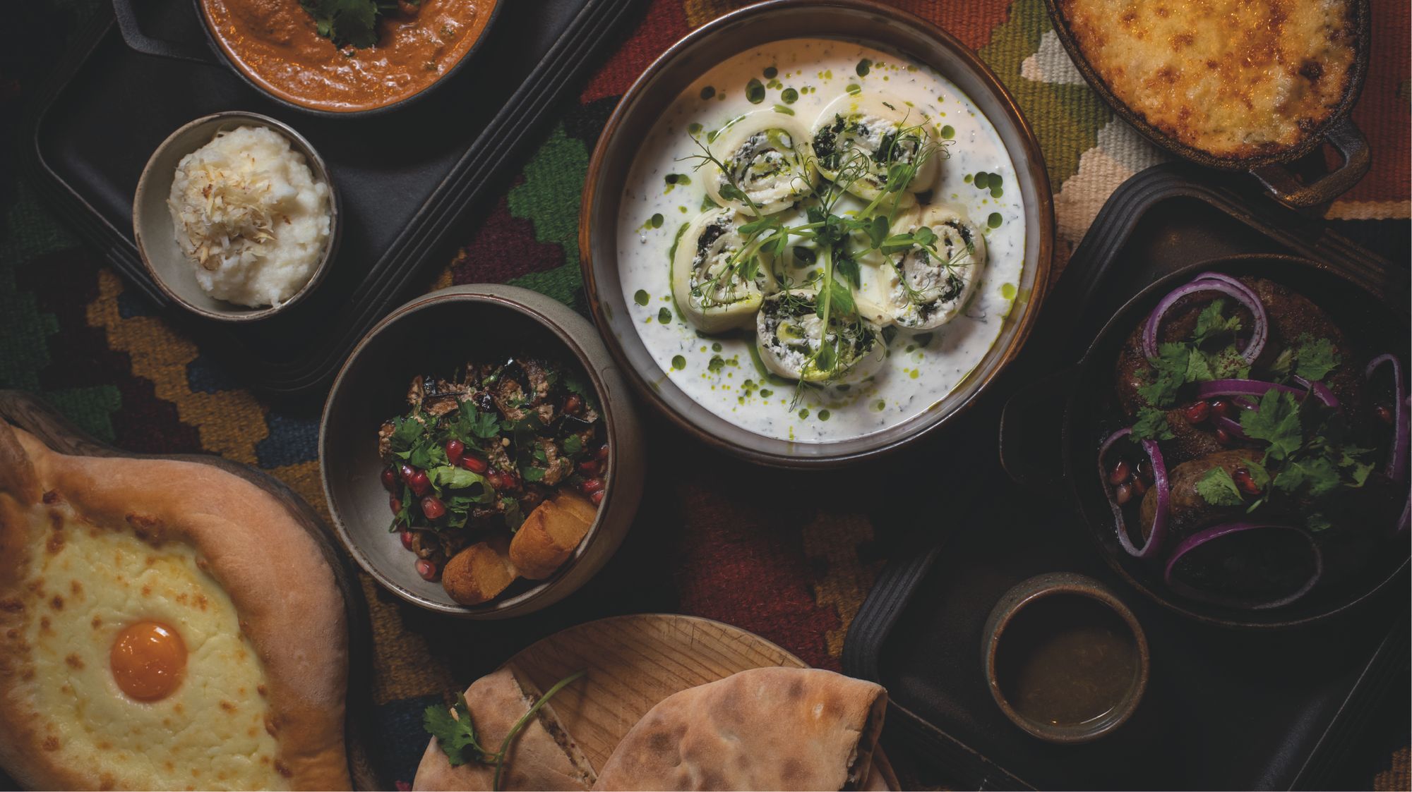 Variación de khachapuri tradicional con hojas de espinaca, verduras y queso casero dentro de la masa.