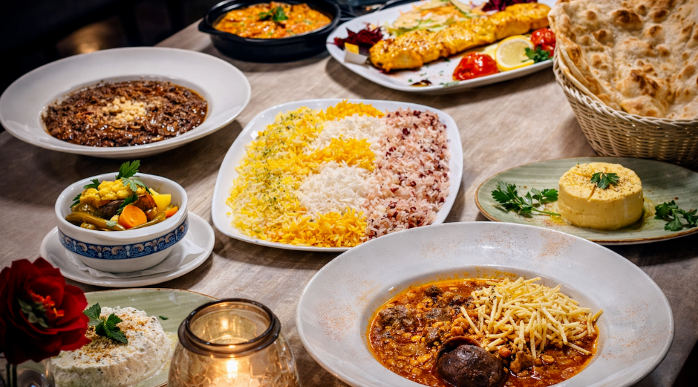 Berenjenas, kashk (salsa de queso curado persa), nueces molidas y aceite de menta