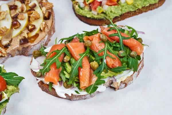 Café o infusión, zumo de naranja natural y tostada de jamón premium o aguacate o atún