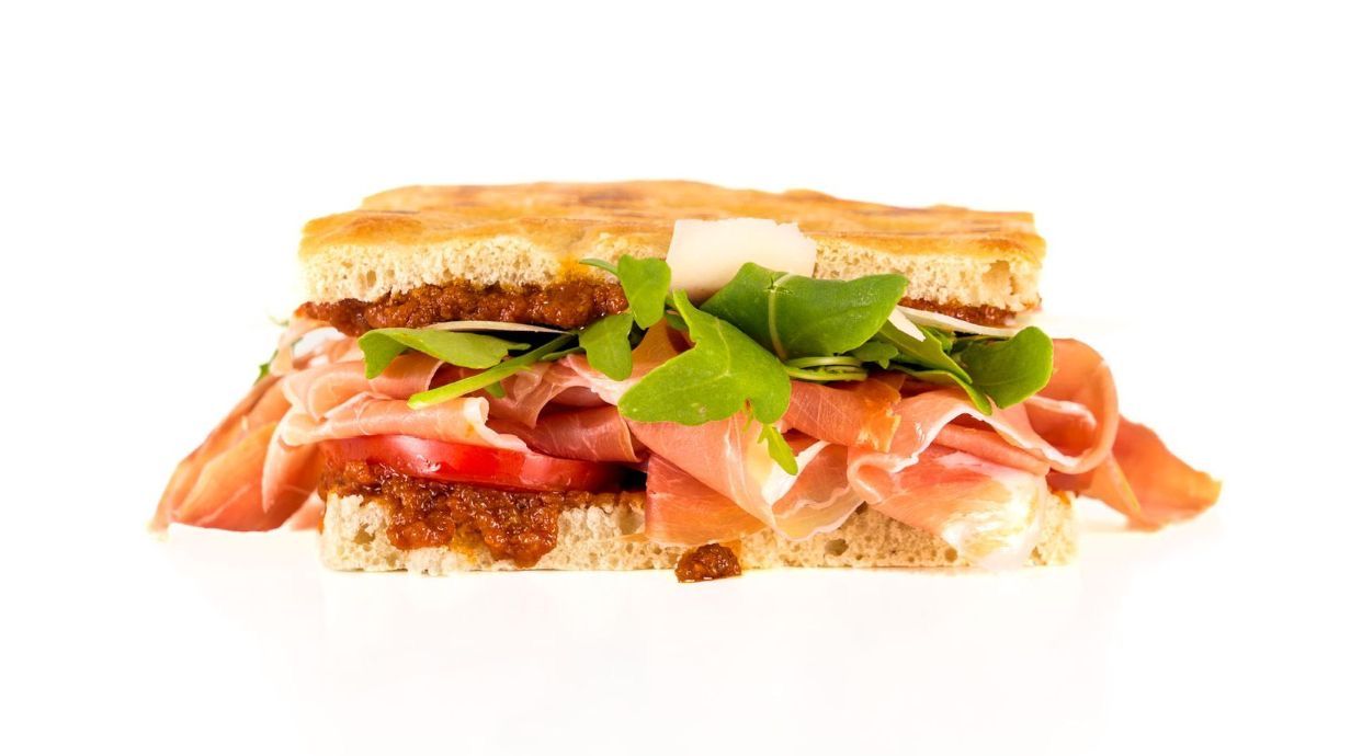 Prosciuto di parma, crema de tomate, tomate, rúcula y parmesano