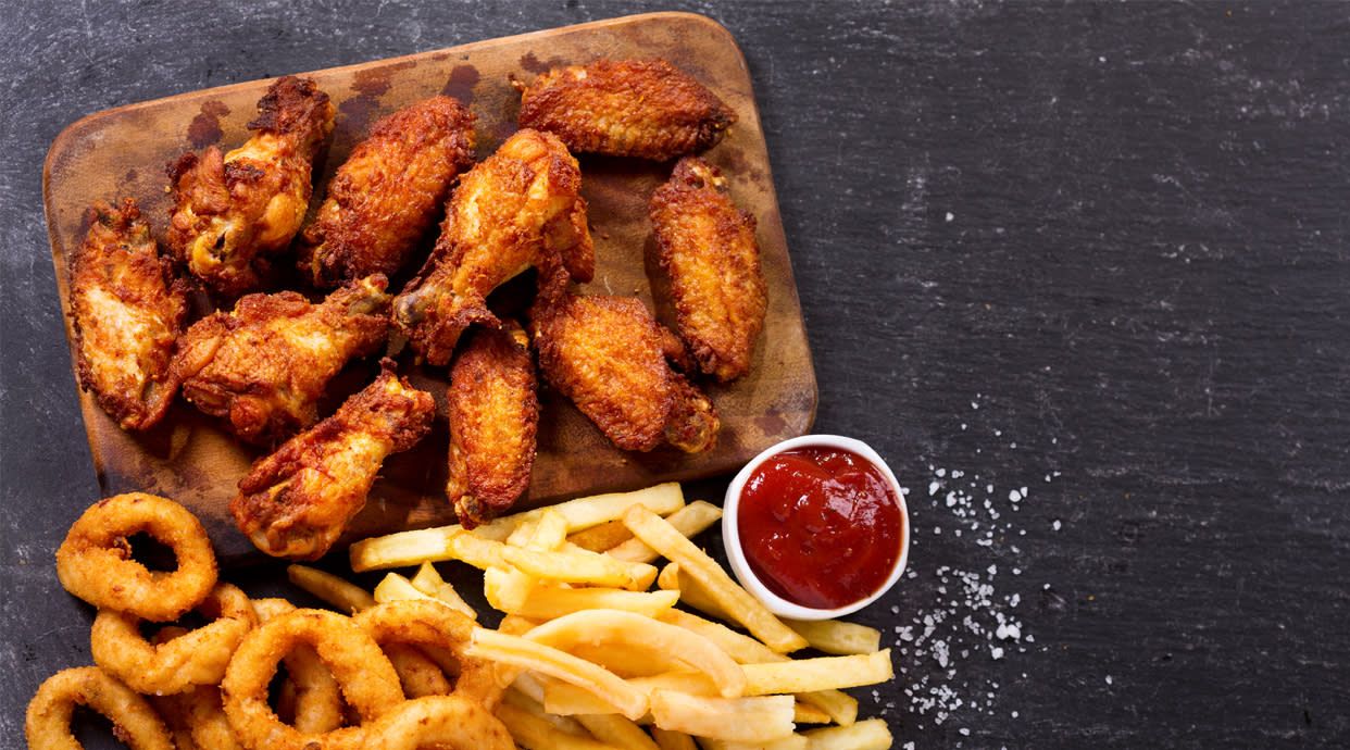 Bastones crujientes de pechuga, lechuga, tomate, maíz y salsa barbacoa de la casa, más patatas o ensalada y lata de refresco.