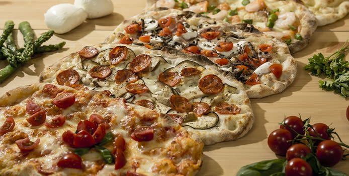 Tomate fresco, mozzarella, orégano, fungi y porcini, beicon y queso brie