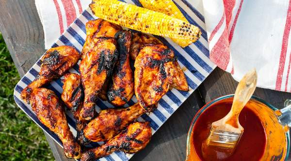 Carne de pollo o ternera con ensalada, maíz y salsa