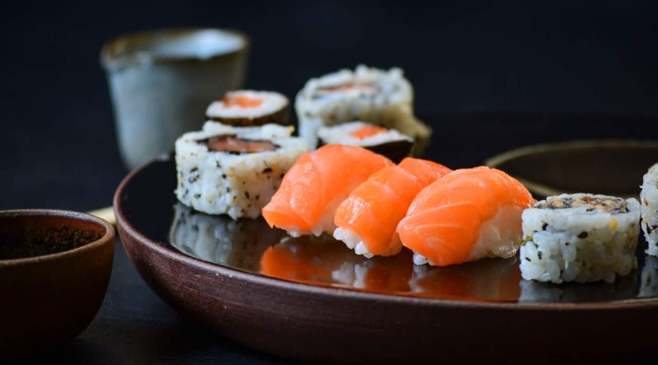 Salmón, aguacate, arroz, alga nori, sésamo y picante