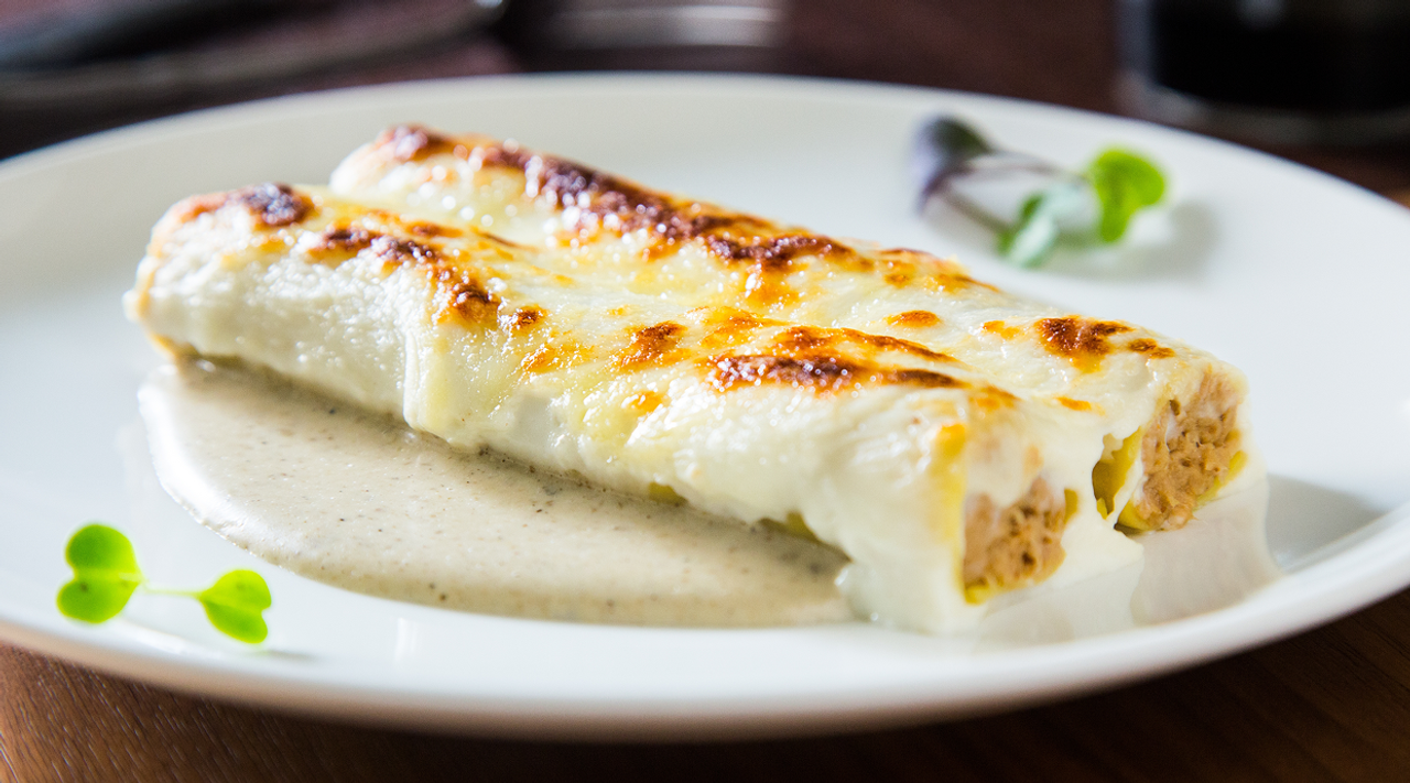 Espaguetis de trigo, ternera, cebolla, apio, tomate, queso emmental, pimienta negra y aceite de oliva virgen extra