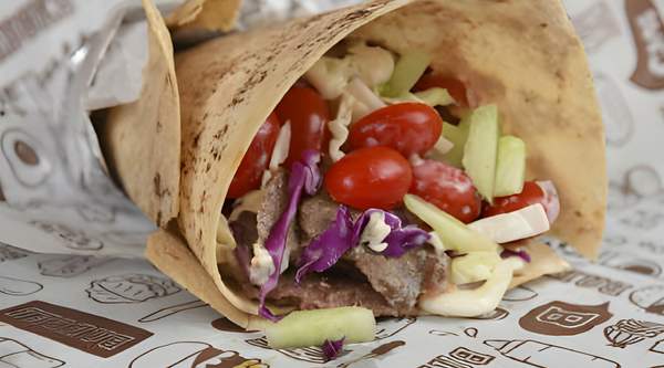 ¡Disfruta de la deliciosa combinación de carne sazonada, verduras frescas y salsa de yogur en nuestro auténtico pita kebab! ¡Sabor en cada bocado!