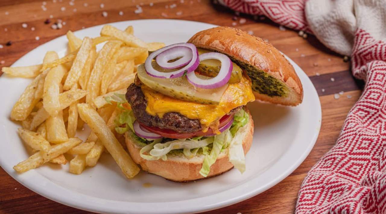 Doble smash burger de ternera black angus, doble cheddar y bacon