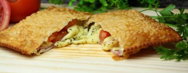 Masa finita y crujiente ( no lleva huevo en la masa ) rellena de QUESO, TOMATE, JAMÓN YORK Y ORÉGANO.