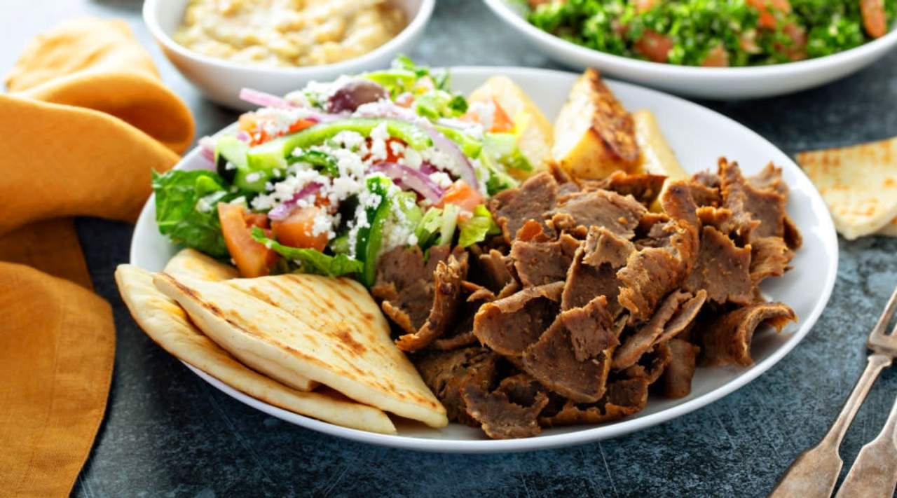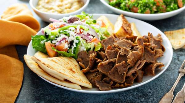 Plato de Kebab de ternera o pollo o mixto acompañado de arroz blanco y salsa