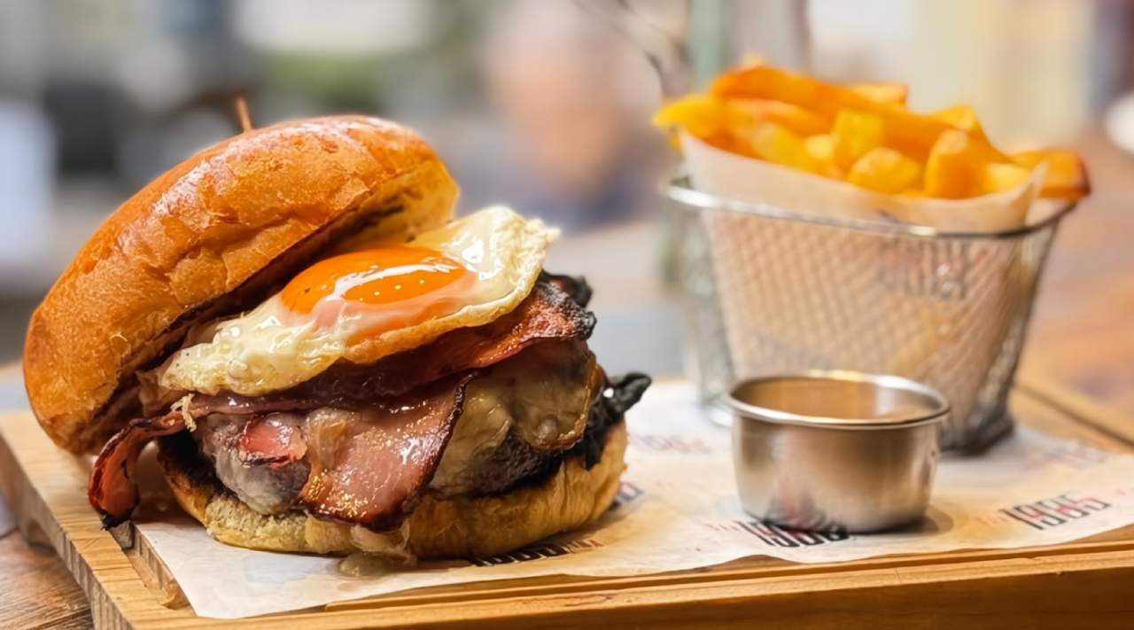 Pechuga de pollo Frito crujiente en pan brioche con salsa agridulce, pimiento rojo y chile encurtido, pickle de zanahoria para un contraste fresco y equilibrado.